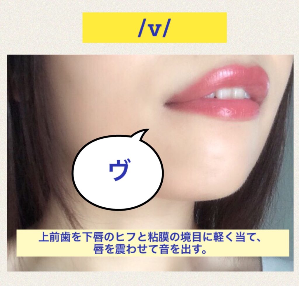 Vは日本語のブと違い、唇を閉じません。
